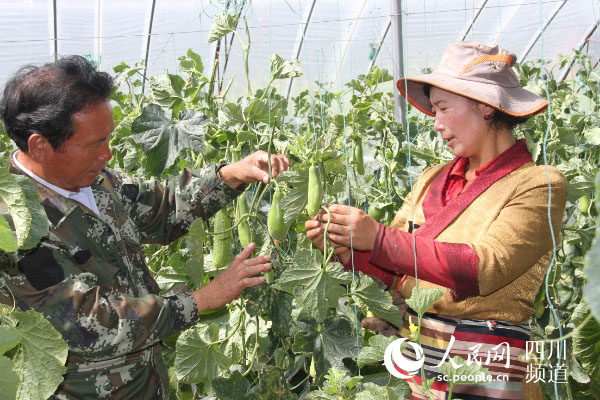 “你們要把瓜葉分叉中長(zhǎng)出的小瓜叉去掉,這樣就能減少瓜養(yǎng)分的消耗,長(zhǎng)出的西瓜才能又大又甜。”一位山東漢子在蔬菜大棚里向當(dāng)?shù)氐霓r(nóng)牧民傳授種植西瓜的心得。2016年10月,理塘縣引進(jìn)瑪吉阿米農(nóng)業(yè)開發(fā)有限公司,修建58個(gè)現(xiàn)代化標(biāo)準(zhǔn)大棚,并從山東引進(jìn)了溫帶瓜果蔬菜的現(xiàn)代化種植技術(shù)。