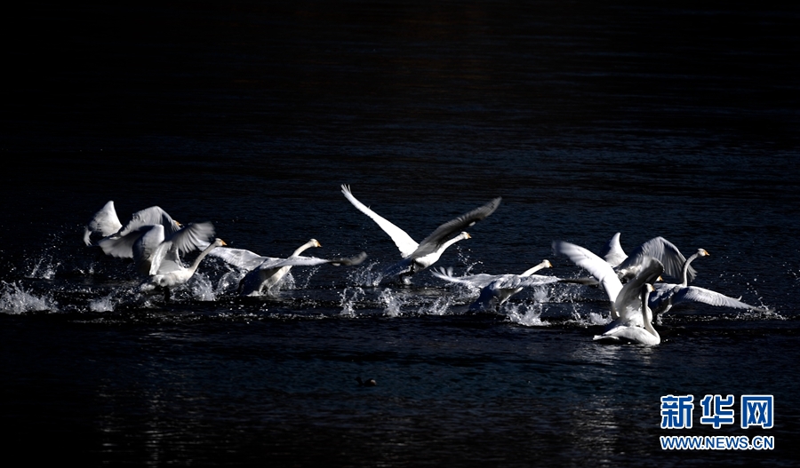 連續(xù)幾日,夕陽映照下的貴德黃河清國家濕地公園一片寧靜,潔白的疣鼻天鵝和大天鵝在清澈的水面低掠捕食,時而在淺水里游來游去,時而臥于水面之上,靜靜地欣賞周圍的景色,構(gòu)成一幅美麗的山水畫卷。
