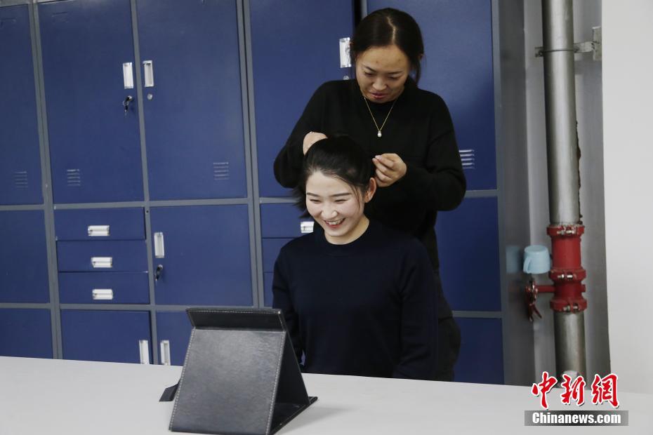 2月24日,青海省果洛藏族自治州公安局特警支隊直屬女子中隊的隊員們在閑暇時探討編發(fā)技巧。在高寒缺氧、紫外線強、平均海拔4000米以上的青海省果洛藏族自治州,隊員們堅持進行騎馬、射擊、野外適應性訓練。閑暇時,她們也是一群愛看書,愛化妝,更愛健身的女孩。據(jù)了解,果洛州公安局特警支隊直屬女子中隊成立于2017年9月,由9名女特警組成,年齡最小的隊員24歲。中新社記者 馬銘言 攝