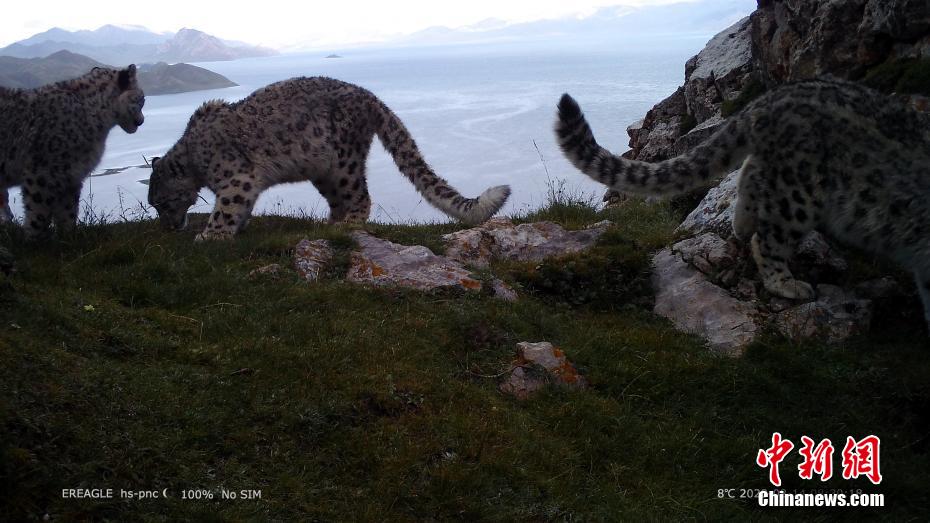 圖為相機抓拍到多只雪豹活動畫面。 青海原上草自然保護中心供圖