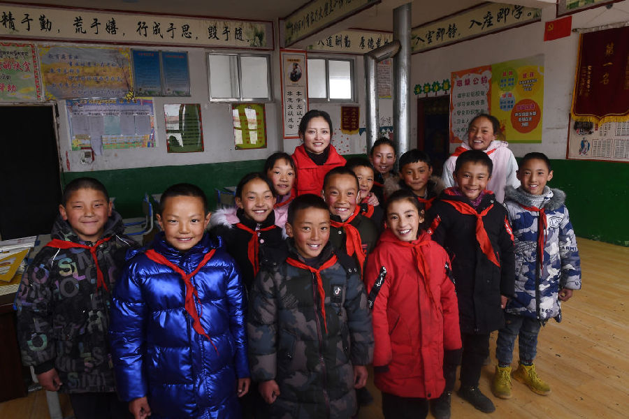面對(duì)高寒缺氧,瘦弱的達(dá)哇才吉沒(méi)有退卻。不到半年,她就成為孩子們最喜歡的老師之一。除了日常教學(xué),生活中她還是孩子們的“大姐姐”,和其他老師一起照顧著37個(gè)寄宿學(xué)生的起居。