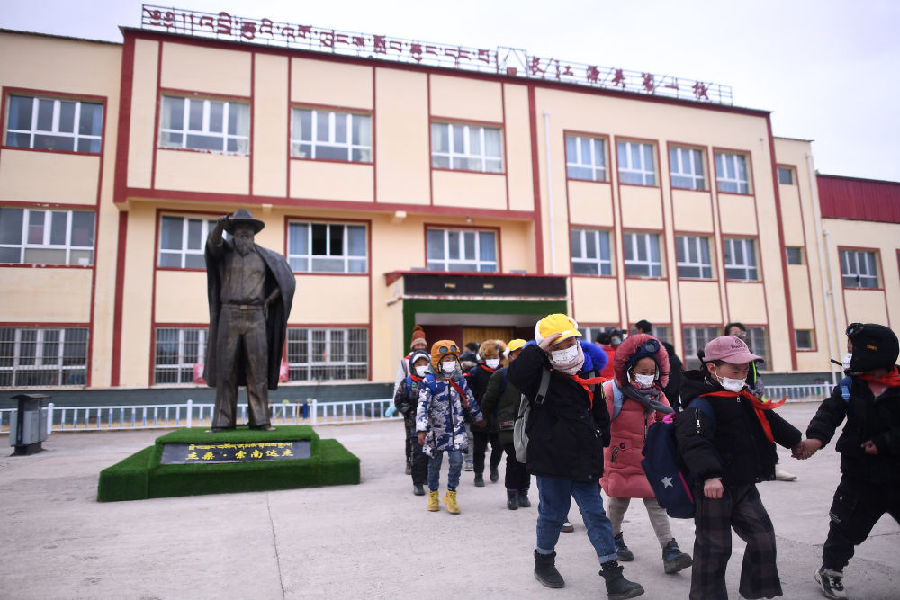 索加鄉(xiāng)寄宿小學(xué)是青海邊遠(yuǎn)牧區(qū)鄉(xiāng)鎮(zhèn)小學(xué)變化的一個(gè)縮影。治多縣教育局局長(zhǎng)美少措毛介紹,“十三五”以來(lái),當(dāng)?shù)卣浴敖逃亲畲竺裆钡睦砟?,健全以政府投入為主、多渠道籌集教育經(jīng)費(fèi)的體制,持續(xù)推進(jìn)學(xué)校標(biāo)準(zhǔn)化建設(shè),充分滿足牧民群眾子女“就近入學(xué)”“上好學(xué)”的需求,實(shí)現(xiàn)了適齡兒童入學(xué)率100%。