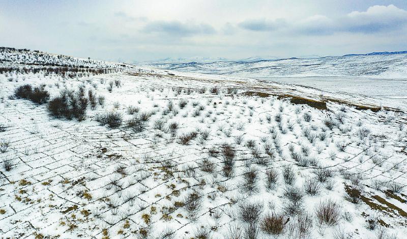 2021年3月6日拍攝的若爾蓋縣麥溪鄉(xiāng)和轄曼鎮(zhèn)實施防沙治沙項目。該項目取得良好效果,高原紅柳覆蓋沙化面積達(dá)85%以上。尹鋼 攝