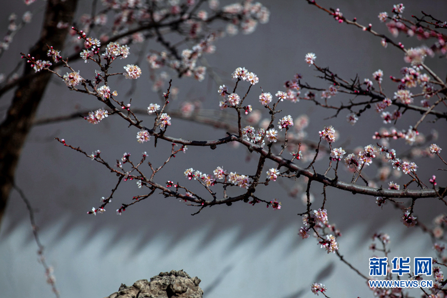滿階芳草綠,一片杏花香。枝頭綻放的杏花嬌艷無比。新華網(wǎng) 陳錫明 攝