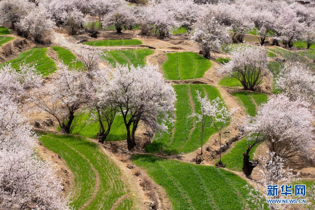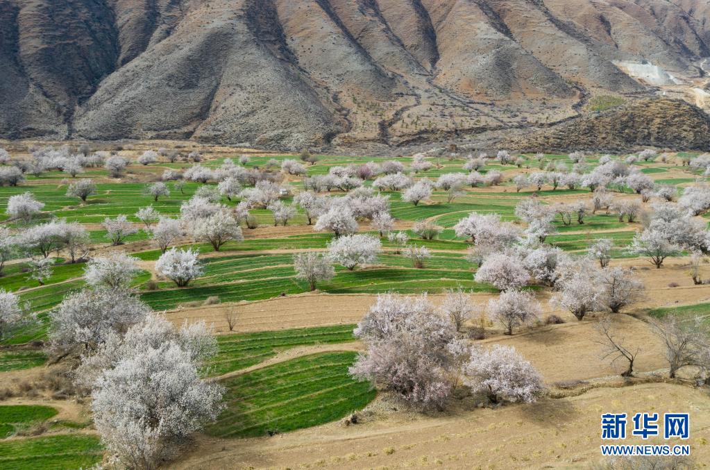 近日,四川省甘孜藏族自治州得榮縣境內(nèi)成片的野生桃花從河谷到山腰次第開放,漫山遍野的桃花與雪山、麥地、白藏房等構(gòu)成高原上美麗的“世外桃園”畫卷。