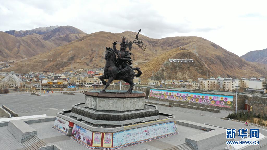 這是青海省玉樹藏族自治州玉樹市格薩爾王廣場(3月10日攝,無人機(jī)照片)。新華社記者 張宏祥 攝