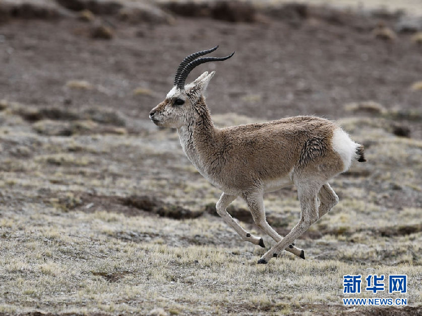 5月25日,一只藏原羚在三江源國家公園黃河源園區(qū)內(nèi)奔跑。新華社記者 張龍 攝