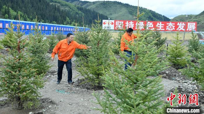 記者在試驗(yàn)基地現(xiàn)場(chǎng)看到,因施工開挖的草甸被切割成正方形,整齊堆放在一起,通過噴淋系統(tǒng)不時(shí)澆水。一旁的表土養(yǎng)護(hù)及苗木驗(yàn)證試驗(yàn)基地上,因施工開挖的表土也被集中堆放、攤平,經(jīng)過營養(yǎng)培育后,栽種了白樺、冷杉、側(cè)柏、高山柳等多種高原樹木。
