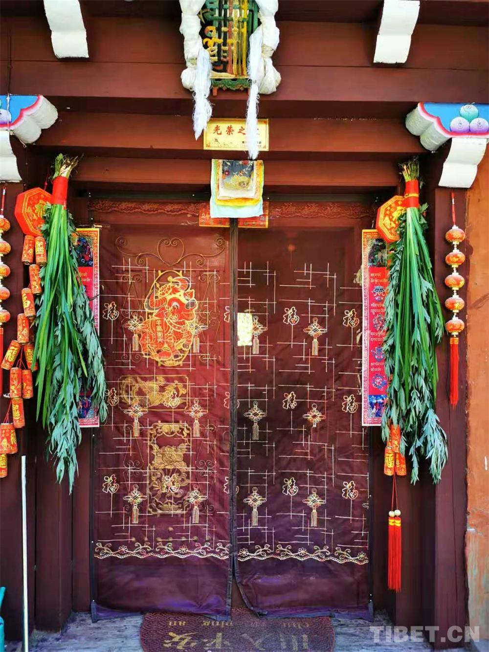 圖為居民家大門外懸掛著艾葉、菖蒲