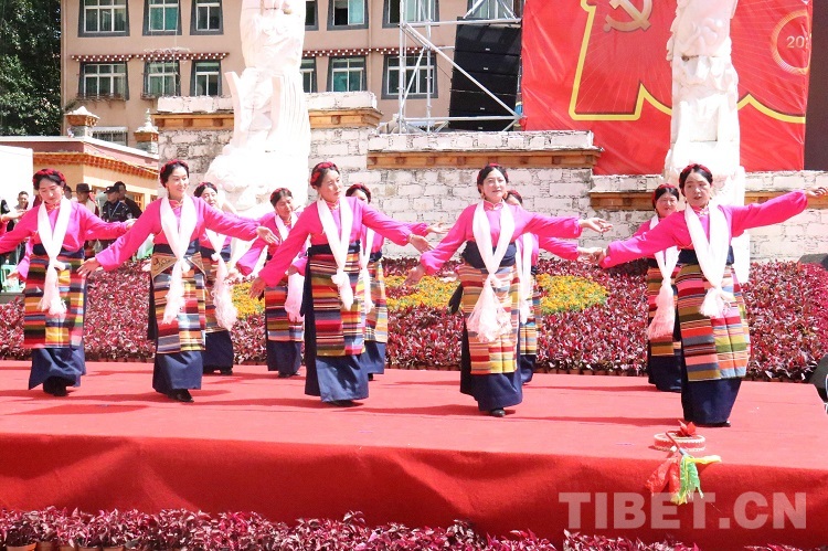 活動(dòng)現(xiàn)場(chǎng),黨旗國(guó)旗飄揚(yáng)、哈達(dá)傳情,在一片歡騰的海洋里,大家載歌載舞齊唱光輝歲月,放聲歌頌幸福美好生活,盡情抒發(fā)高城兒女的愛(ài)黨愛(ài)國(guó)情懷。歌曲《翻身農(nóng)奴把歌唱》《草原上升起不落的太陽(yáng)》,穿插吉祥老人頌詞和舞蹈。表達(dá)高原兒女在中國(guó)共產(chǎn)黨的領(lǐng)導(dǎo)下,翻身獲得解放,掌握了自己的命運(yùn)。短短幾十年的發(fā)展過(guò)程,涉藏州縣迎來(lái)騰飛,經(jīng)濟(jì)社會(huì)發(fā)生了翻天覆地的變化,與祖國(guó)同步實(shí)現(xiàn)全面小康。