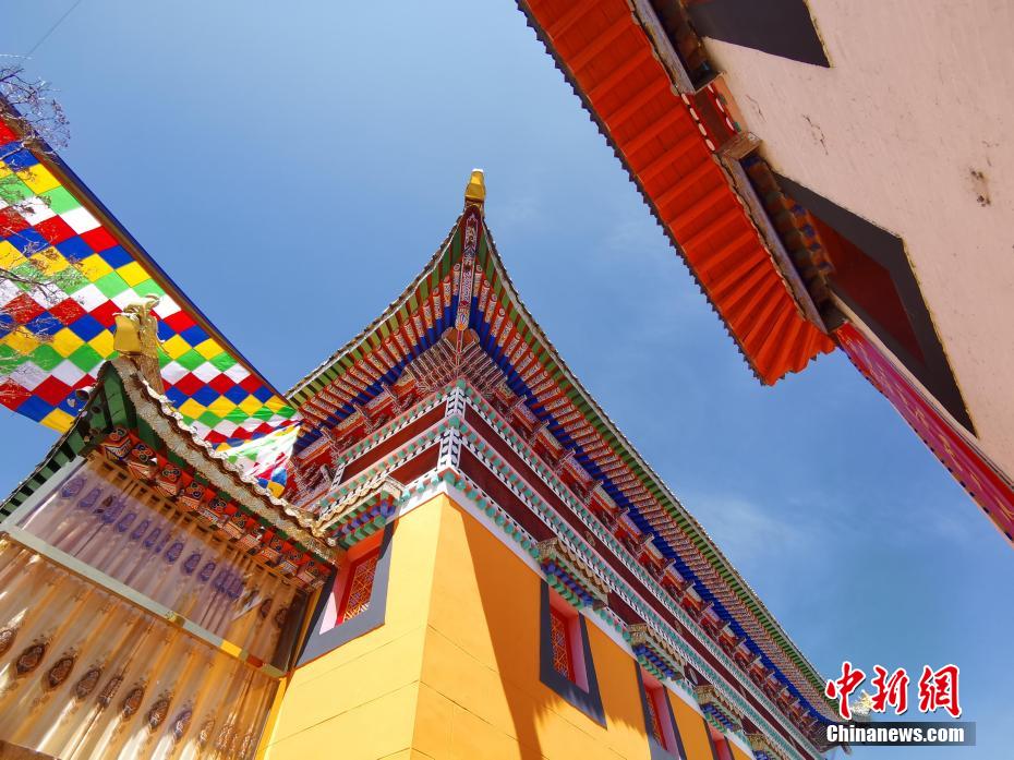圖為扎西多卡瑪?shù)畋皇澜缂o(jì)錄認(rèn)證機(jī)構(gòu)(WRCA)認(rèn)證為彩繪面積最大的單體藏傳佛殿建筑。張?zhí)砀?攝