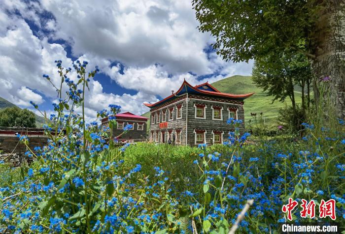 花叢中的藏式民居。劉忠俊 攝