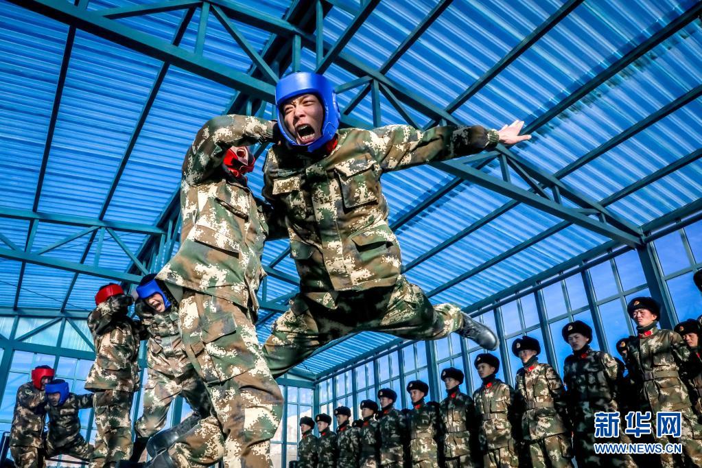 武警青??傟爤?zhí)勤支隊執(zhí)勤七中隊官兵在訓(xùn)練館訓(xùn)練(2月1日攝)。新華社 楊浩 攝