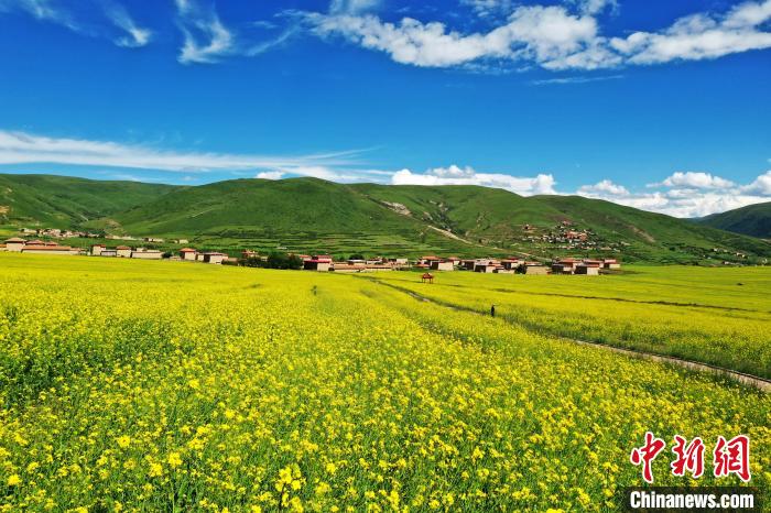 四川阿壩:萬畝高原油菜花引游人