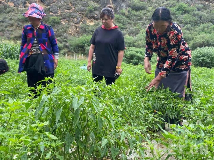 圖為技術(shù)人員在樹椒地里實(shí)地查看樹椒長勢(shì)