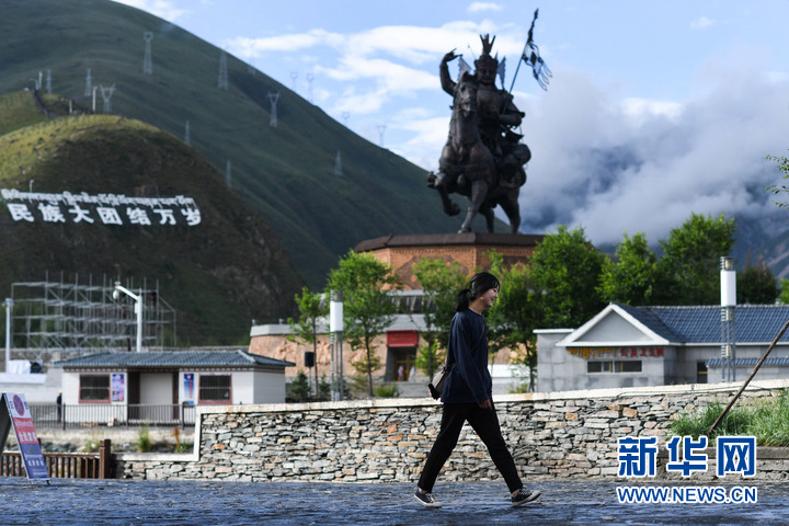 8月6日,市民走過玉樹市格薩爾廣場(chǎng)。新華社記者 吳剛 攝