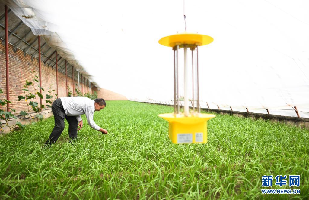 8月5日,魏金明在玉樹市結(jié)古鎮(zhèn)新寨村的蔬菜基地查看韭菜長勢。新華社記者 吳剛 攝