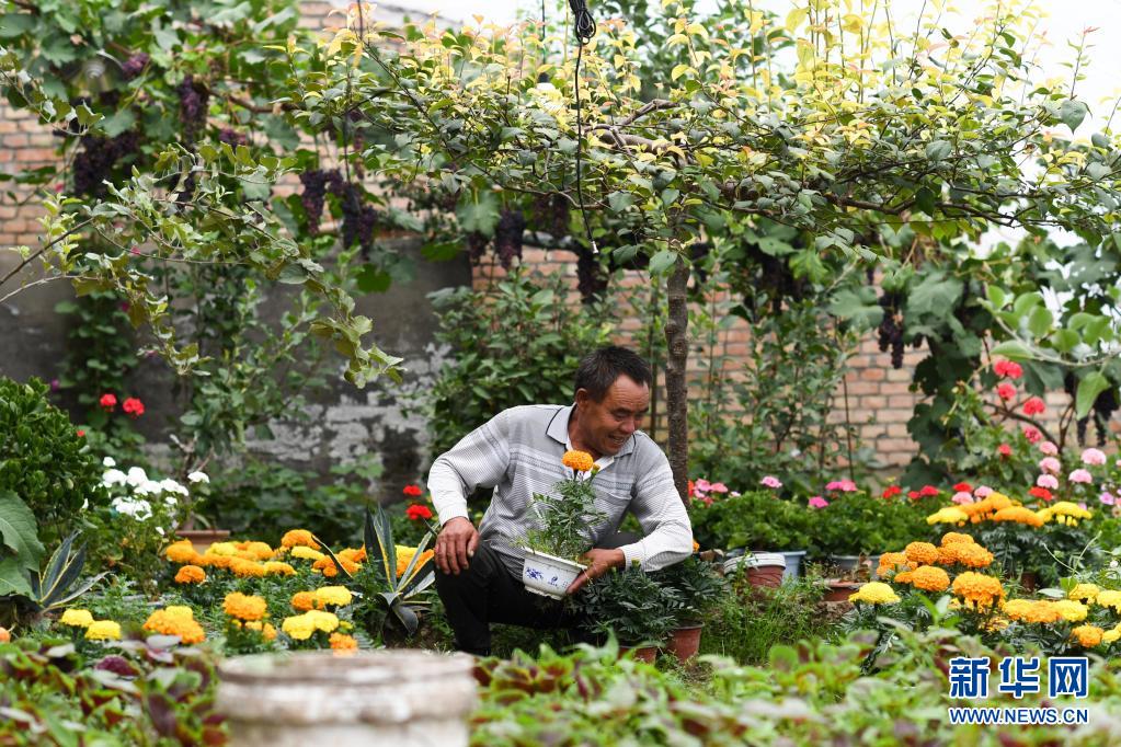 8月5日,魏金明在玉樹市結(jié)古鎮(zhèn)新寨村的蔬菜基地搬運(yùn)花盆。新華社記者 吳剛 攝