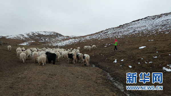 郭娜跟著牦牛群“散步”。(受訪者供圖)