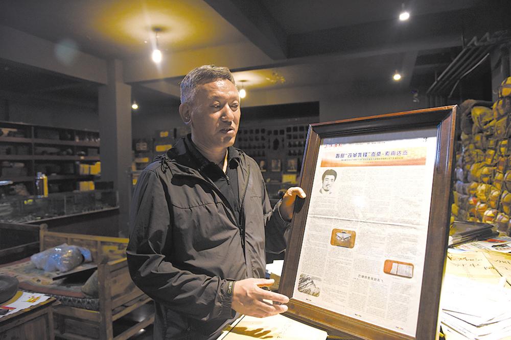 這是一家非遺體驗(yàn)館,內(nèi)有囊謙的紅陶、新寨的瑪尼石刻和省級(jí)非遺產(chǎn)品“咗瑪”,還有老玉樹(shù)味道的“曲克安噠”?!扒税矅}”是一種以牦牛奶為原料,經(jīng)過(guò)數(shù)十次的提取與發(fā)酵提取出的手工藏糖,也是玉樹(shù)青年創(chuàng)業(yè)者白卡的創(chuàng)業(yè)實(shí)踐產(chǎn)品。
