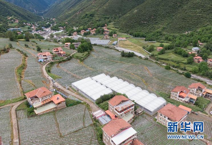 這是四川省阿壩藏族羌族自治州紅原縣邛溪鎮(zhèn)熱坤村的蔬菜大棚(8月13日攝,無人機照片)。新華社記者 江宏景 攝