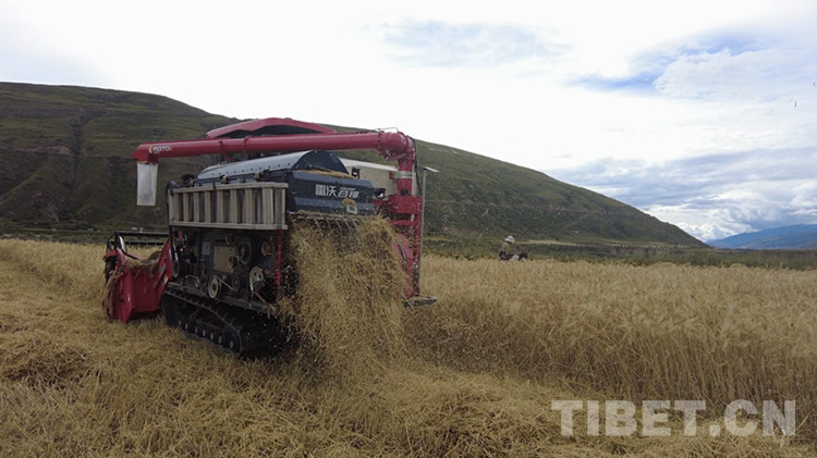 中國西藏網(wǎng)訊 金燦燦的麥浪映襯著農(nóng)民的笑臉,沉甸甸的麥穗承載著豐收的喜悅。8月18日,在四川省甘孜藏族自治州爐霍縣斯木鎮(zhèn)章達(dá)村的青稞地里,麥浪翻滾,大型聯(lián)合收割機(jī)來回穿梭忙著收割,標(biāo)志著爐霍縣青稞機(jī)收作業(yè)正式拉開序幕。