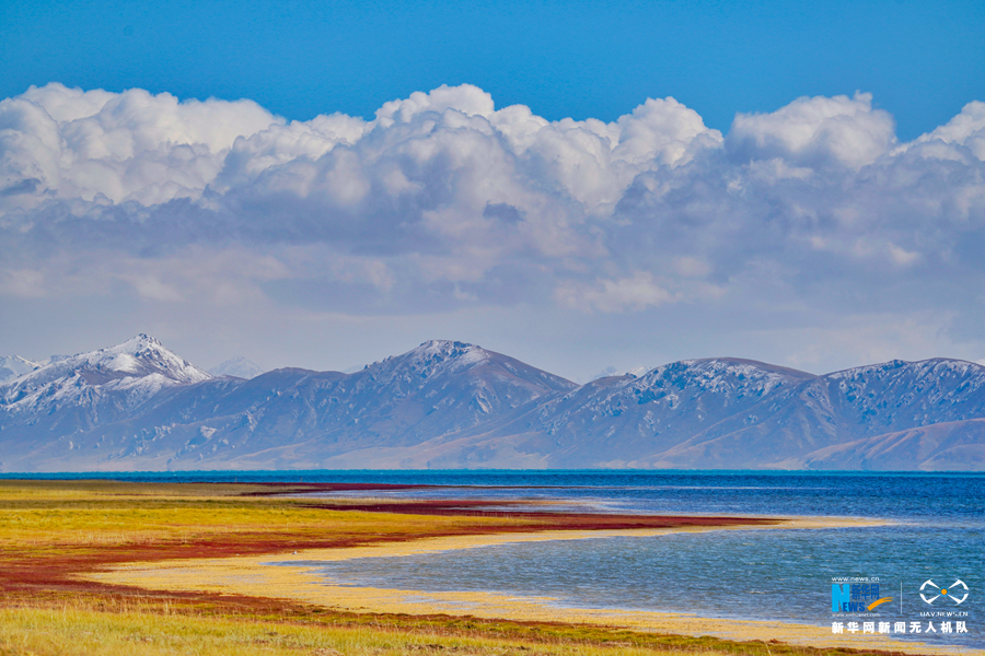 冬格措納湖位于青海省果洛藏族自治州瑪多縣境內(nèi),海拔4000米以上。秋日的冬格措納湖,湖水湛藍、天空遼闊,湖畔的草地紅綠黃交融,一幅大自然的美麗畫卷在這里展開。新華網(wǎng) 宋忠勇 攝