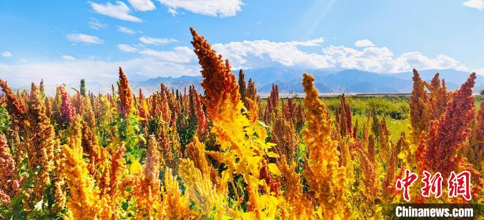 河西農(nóng)場(chǎng)農(nóng)民劉旦智種了30畝藜麥,紅色、白色、黑色的藜麥,在藍(lán)天白云的映襯下,勾勒出一幅高原秋收的美景圖?!敖衲贽见滈L(zhǎng)勢(shì)不錯(cuò),一畝地大約600多斤,如果每斤按4塊錢(qián)算,一畝地可以收入3000多塊錢(qián),經(jīng)濟(jì)效益很不錯(cuò)。我還種了40多畝枸杞,長(zhǎng)勢(shì)跟去年差不多,1斤能賣(mài)20多塊錢(qián)?!眲⒌┲歉吲d地給記者算著賬。