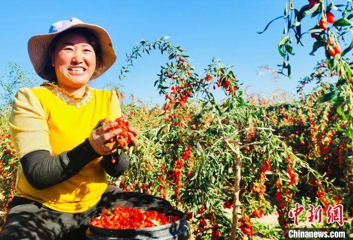 圖為農(nóng)民采摘枸杞。宗布爾 攝