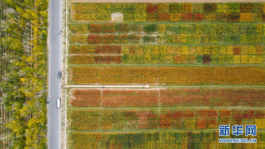 航拍豐收的藜麥地,色彩艷麗如畫卷。新華網(wǎng) 卡婭梅朵 攝