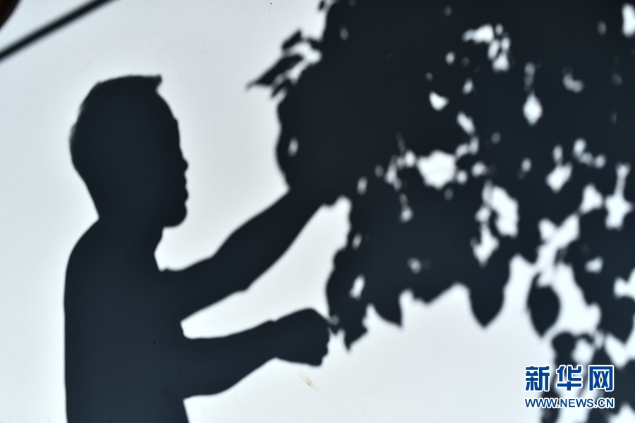 游客在楊林春的農(nóng)家院里采摘水果時(shí)映在墻上的影子。新華網(wǎng) 潘彬彬 攝