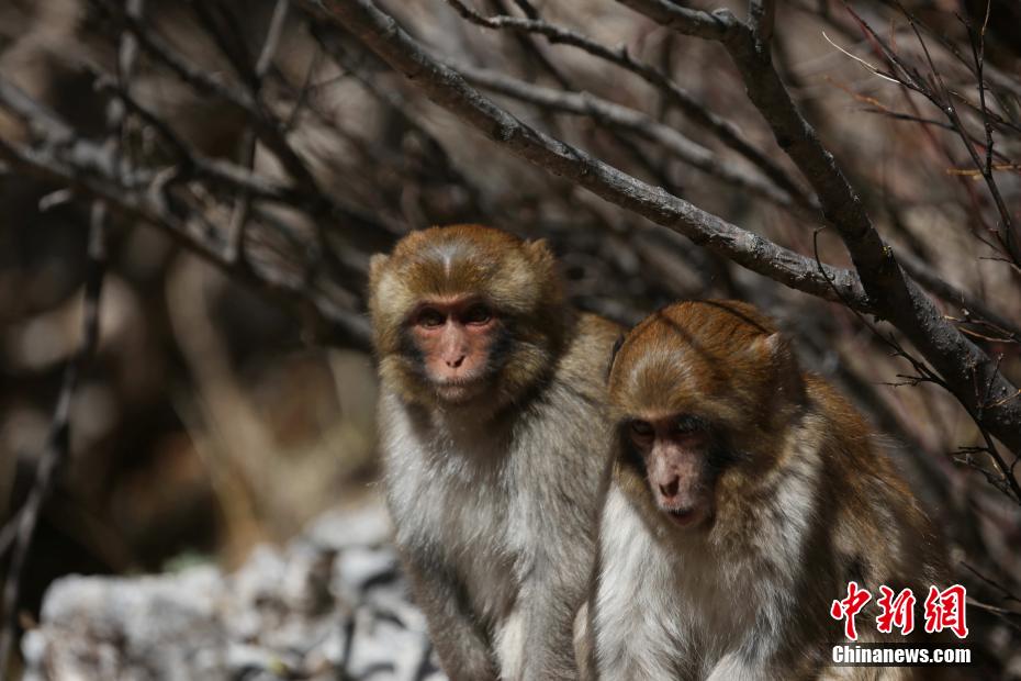 圖為兩只藏獼猴。 張希紅 攝