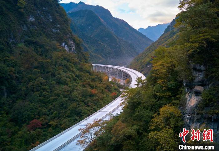 深秋時(shí)節(jié),四川省綿陽(yáng)市平武縣紅葉滿山,層林盡染,仿佛打翻的調(diào)色盤,正在建設(shè)的九綿高速宛若一條玉帶穿行其中,想象通車后駕車行駛在這條高速上,如遨游在五彩斑斕的彩林畫(huà)廊中一般,讓人心曠神怡。