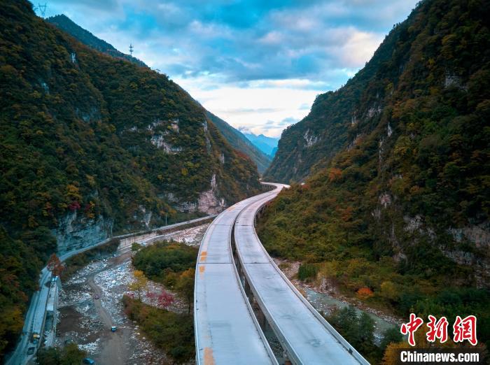 四川平武:九綿高速宛若一條玉帶 點(diǎn)綴五彩斑斕的滿山彩林