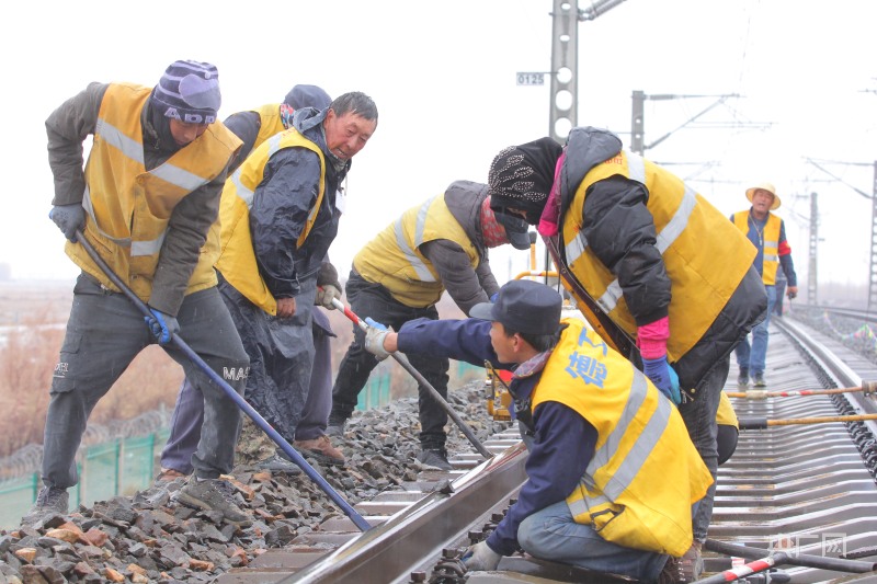 深秋時節(jié),在青海省海西蒙古族藏族自治州,巴音河畔的德令哈市雨雪飄揚(yáng)。在鄰近德令哈站的鐵路區(qū)間上,170余人正在火熱工作中。