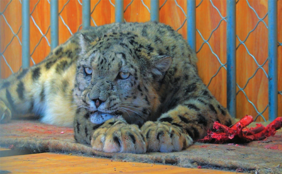 根呷告訴記者,當(dāng)年雪豹傷愈后曾被放歸山林,但他們觀察發(fā)現(xiàn),它已經(jīng)失去了野外生存的能力,“它的野性依然存在,但沒法捕獵了。這是一只老年雪豹,牙齒已經(jīng)被磨平了,按人的年齡推斷,可能相當(dāng)于七八十歲的老人。”