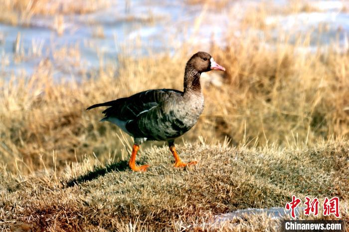 圖為白額雁。青海多美生態(tài)環(huán)??萍加邢薰?供圖