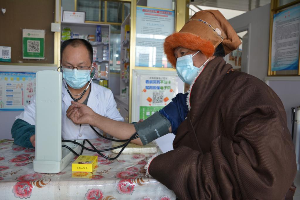 在一旁的復(fù)康診所內(nèi),日洛正在給生病的孫子買藥?!靶『⒆影l(fā)熱咳嗽,拿點感冒藥就行,記得一天吃三次?!钡却蠓蛘f罷,日洛又挽起衣袖請大夫給自己量血壓?!霸\所開在家門口,頭疼腦熱買藥方便?,F(xiàn)在生活好了,我也要注意身體,還等著小孫子帶我出去旅游呢?!比章逭f。