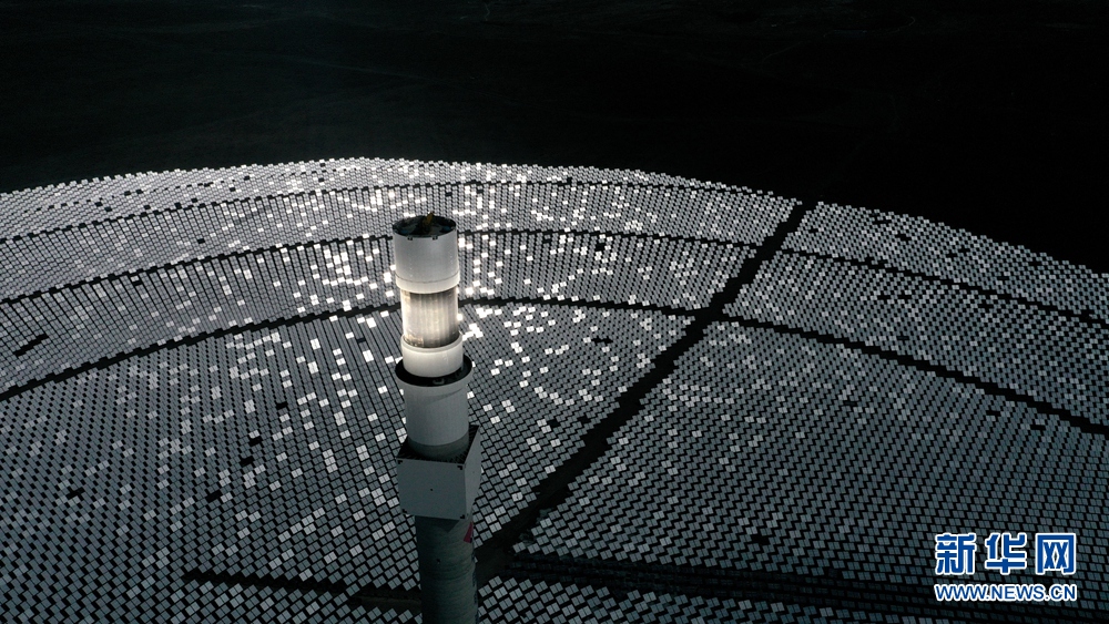 位于青海省海南藏族自治州共和縣光伏產(chǎn)業(yè)園內(nèi)一處塔式光熱發(fā)電項(xiàng)目(無人機(jī)照片)。新華社記者 張宏祥 攝
