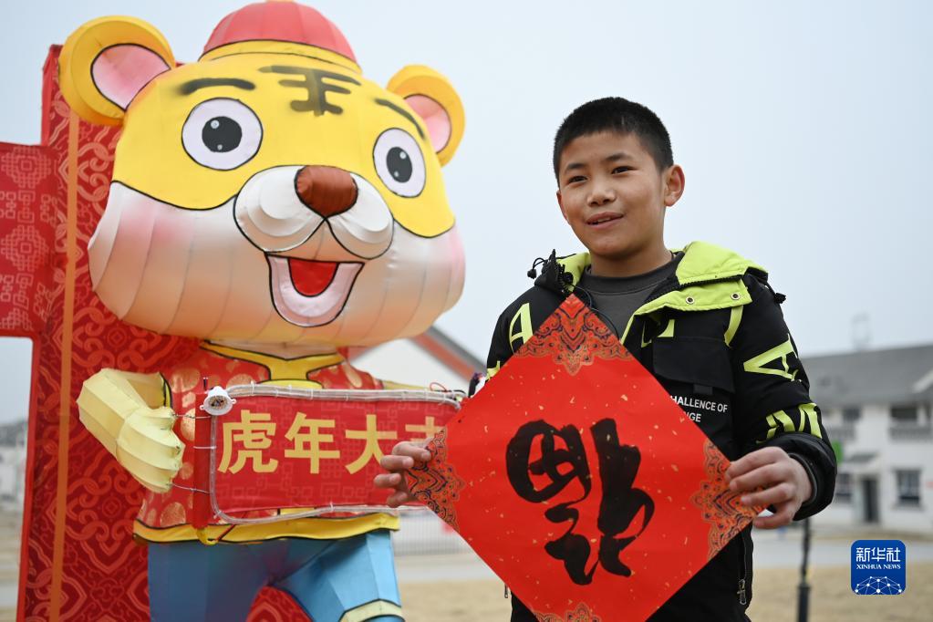 1月25日,在蘭州新區(qū)舟曲避險搬遷安置點,搬遷群眾展示領(lǐng)取的福字。新華社記者 范培珅 攝