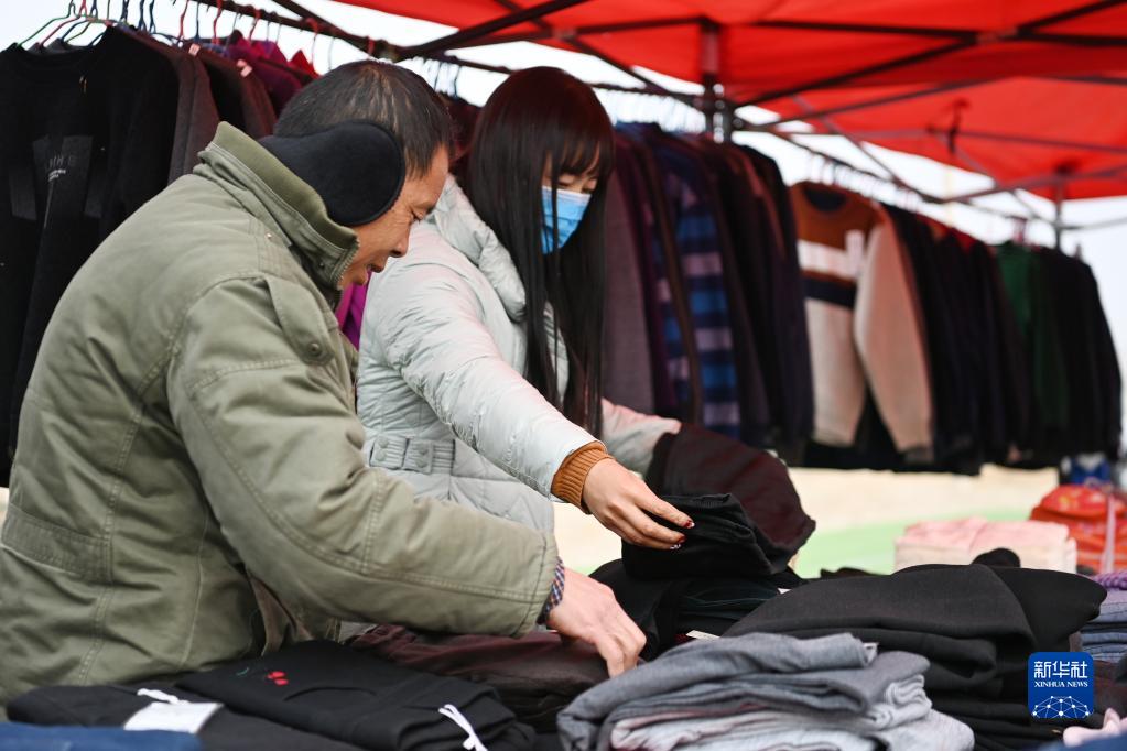 1月25日,在蘭州新區(qū)舟曲避險搬遷安置點,搬遷群眾置辦年貨。新華社記者 范培珅 攝