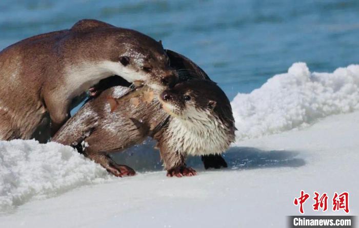 圖為鳥(niǎo)類(lèi)調(diào)查期間,偶遇水獺母子在河邊捕魚(yú)。青海多美生態(tài)環(huán)??萍加邢薰?供圖