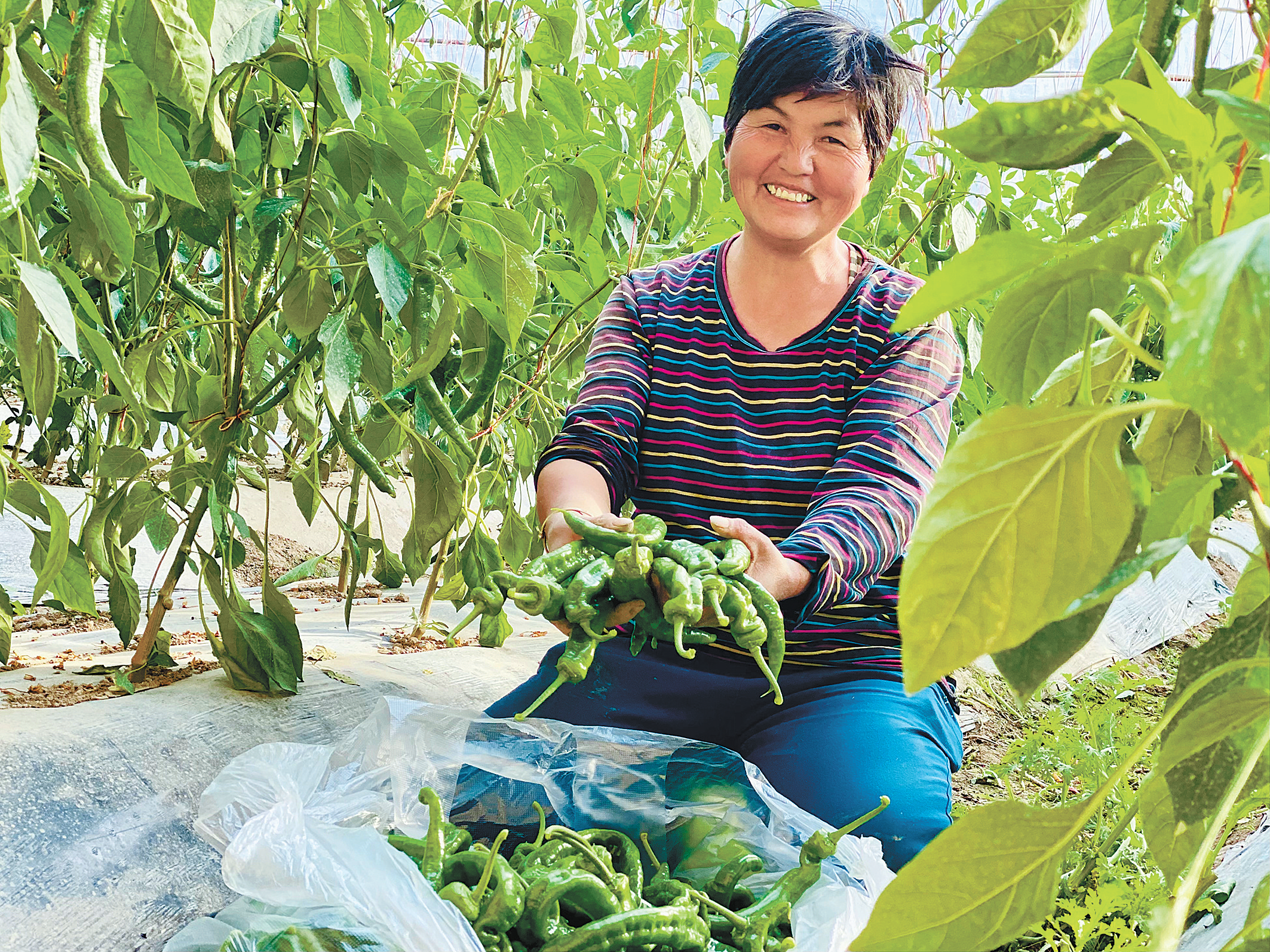 2月17日下午,記者走進海南藏族自治州貴德縣的易稼源農(nóng)產(chǎn)品發(fā)展有限公司,看見西紅柿、生菜、辣椒等蔬菜長勢喜人。據(jù)了解,該公司是貴德縣“菜籃子”工程建設的重點企業(yè),主要種植西紅柿、秋葵、韭菜等,引導周邊2000余農(nóng)戶從事種植業(yè),為周邊地區(qū)的種植戶、養(yǎng)殖戶搭建了特色農(nóng)產(chǎn)品銷售平臺和示范園區(qū),為推動全縣特色農(nóng)牧業(yè)擴大生產(chǎn)規(guī)模發(fā)揮了積極作用。圖為大棚里生長的辣椒。