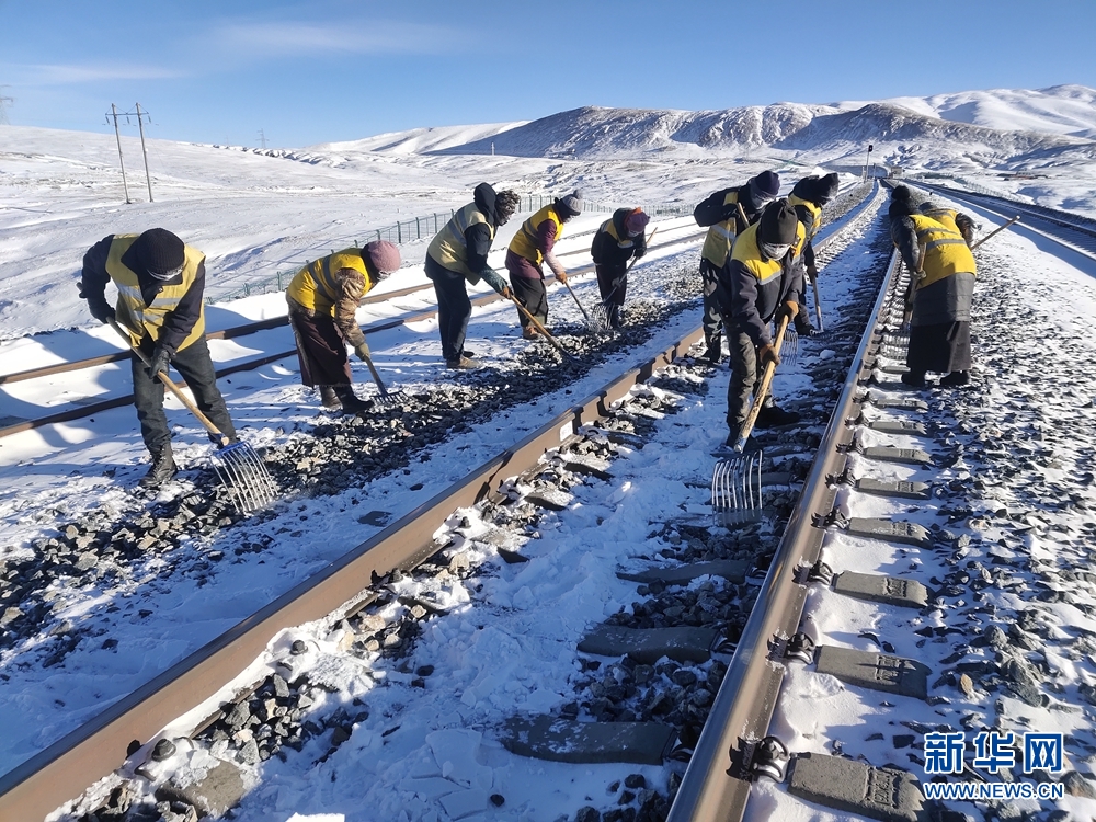 中國(guó)鐵路青藏集團(tuán)公司格爾木工務(wù)段的職工在進(jìn)行日常養(yǎng)護(hù)工作。