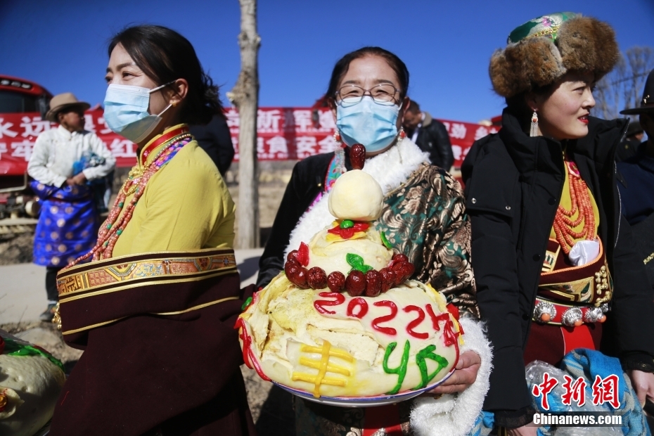 2月24日,青海省海南藏族自治州貴德縣拉西瓦鎮(zhèn)十個村的藏族民眾身著盛裝,端著寓意風調(diào)雨順、五谷豐登的饃饃(藏語稱之為“彤糕”)來到田間,參加傳統(tǒng)春耕儀式。儀式上,民眾撒種祈福,再現(xiàn)當?shù)剞r(nóng)耕從人力耕作到人畜耕作,再到機械耕作的發(fā)展過程,并用“二牛抬杠”的傳統(tǒng)方式開啟新春第一犁,寄托對國泰民安、五谷豐登的美好期望。