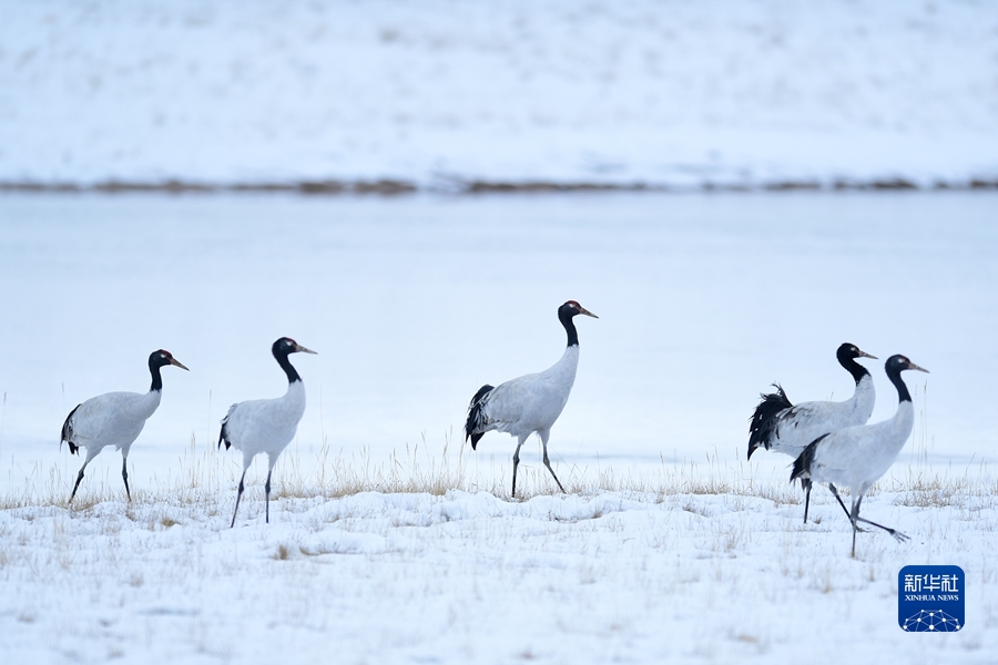 2021年10月21日在三江源國家公園黃河源園區(qū)內(nèi)拍攝的黑頸鶴。新華社記者 張龍 攝