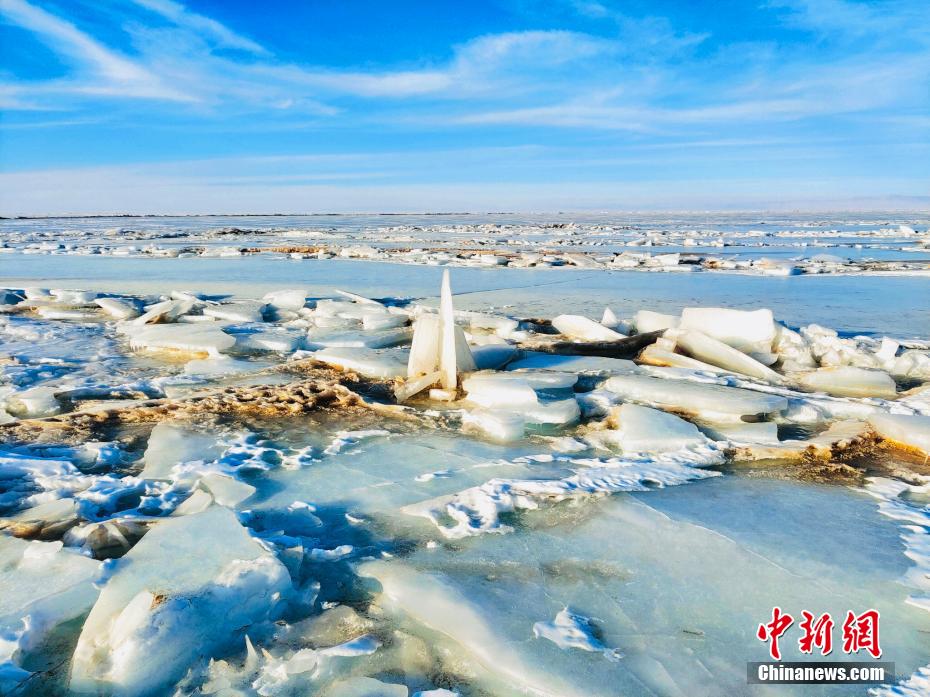 圖為青海湖邊堆積的冰層。趙海梅 攝