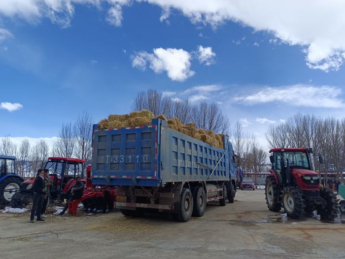 4月3日,理塘縣農(nóng)牧農(nóng)村和科技局從康南抗災保畜打貯草基地緊急調(diào)撥150噸青干草投入抗災保畜工作,中航安盟保險公司也向各牧業(yè)鄉(xiāng)鎮(zhèn)捐贈了15噸青干草。