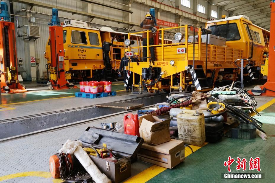 4月8日,在青藏集團公司西寧工務(wù)機械段檢修車間內(nèi),職工正為檢修大型養(yǎng)路機忙碌著。因高原海拔高、冬季鐵路線路質(zhì)量不易控制,西寧工務(wù)機械段施工季均在每年4月份至11月份,作業(yè)范圍覆蓋整個青藏鐵路。此前,所有大型養(yǎng)路機械都需進行設(shè)備年度集中修,經(jīng)維修作業(yè)裝置、檢查電路及液壓系統(tǒng)、探傷車軸損傷、校驗制動閥件等并檢驗合格后才能上線作業(yè)。檢修車間每年的年度集中修都在檢修庫內(nèi)進行,俗稱“大機4S店”。