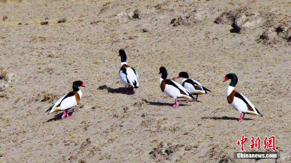 圖為青海湖邊散步的候鳥。張世偉 攝
